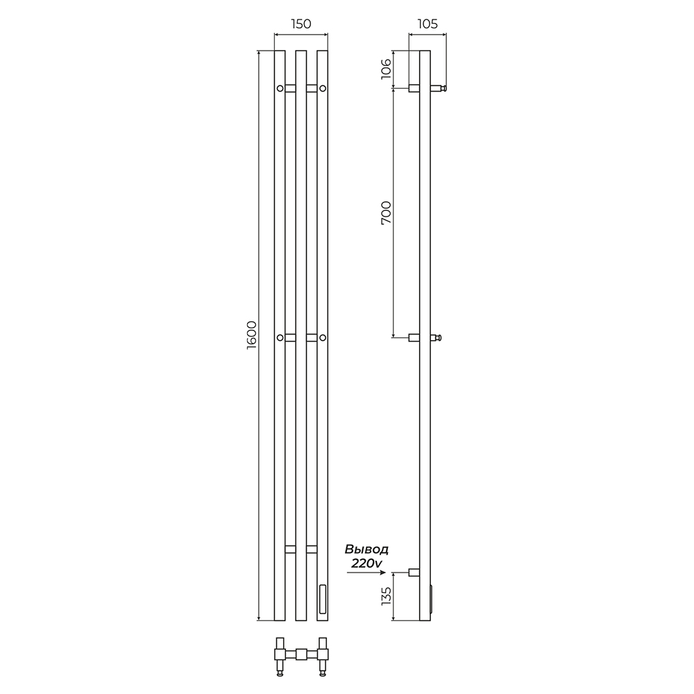 полотенцесушитель; модуль скрытого монтажа; кабель; крепления; инструкция.